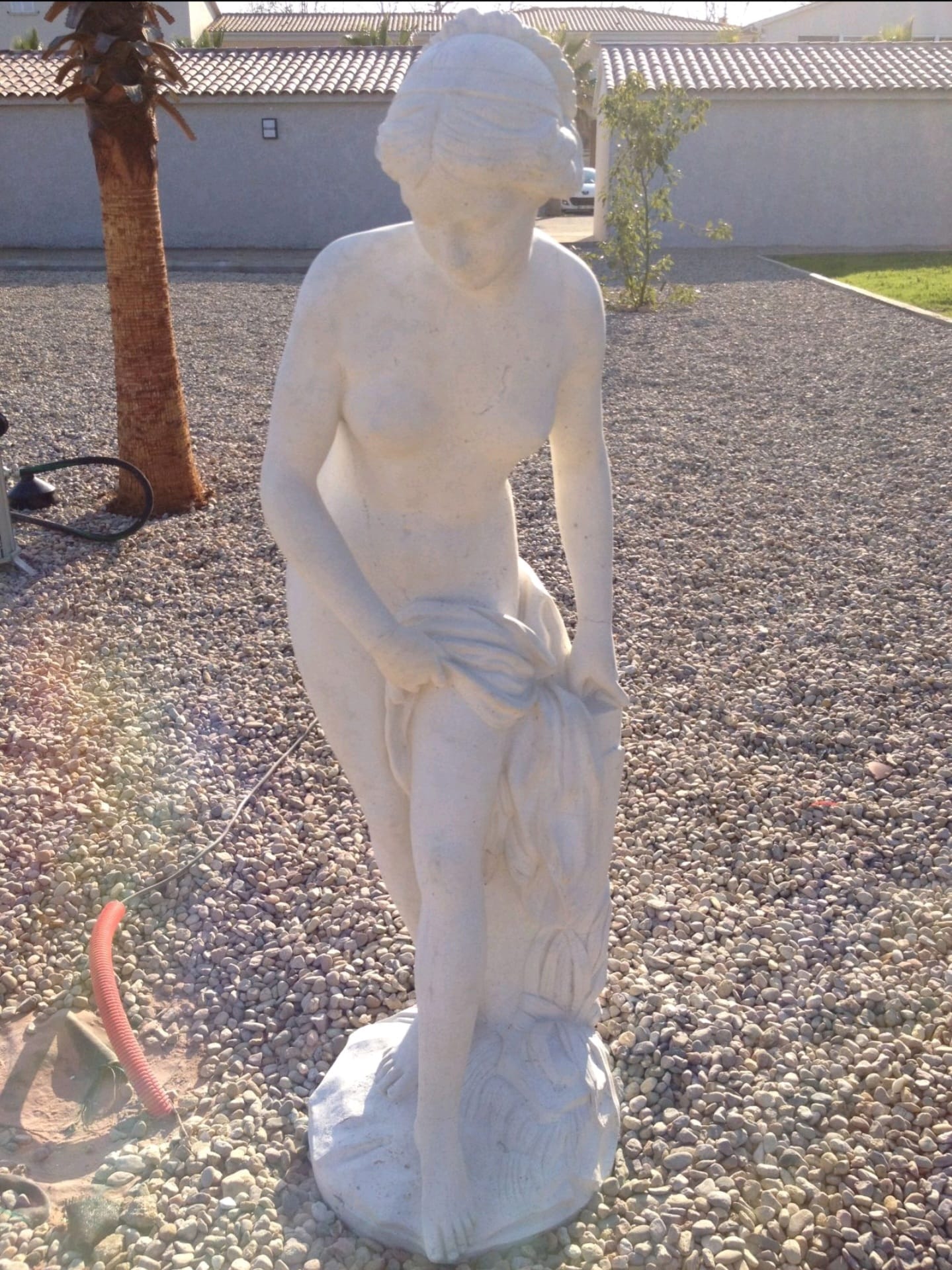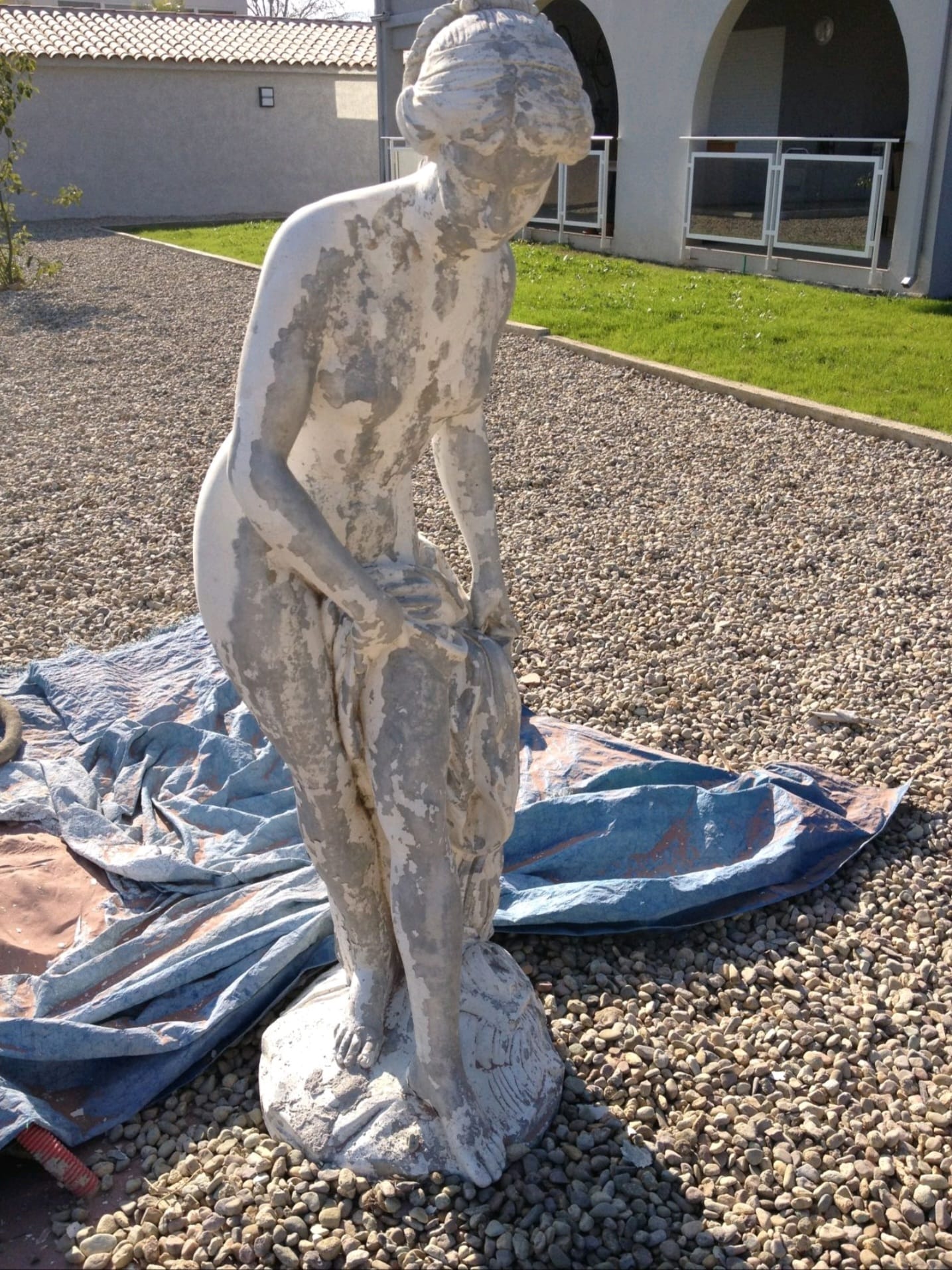 Encore une fois l’aerogommage est parfaitement adapté à ce genre de supports. Nous pouvons voir le résultat ici avec une rénovation spectaculaire d’une statue de décoration exposée aux intempéries.